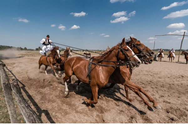 Aici veți vedea spectacole ecvestre cu csikós și plimbări cu căruța. Pentru doritori, sunt sesiuni opționale de călărie. Prânzul va include preparate locale autentice.